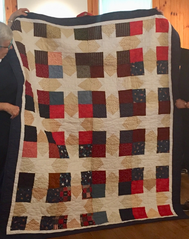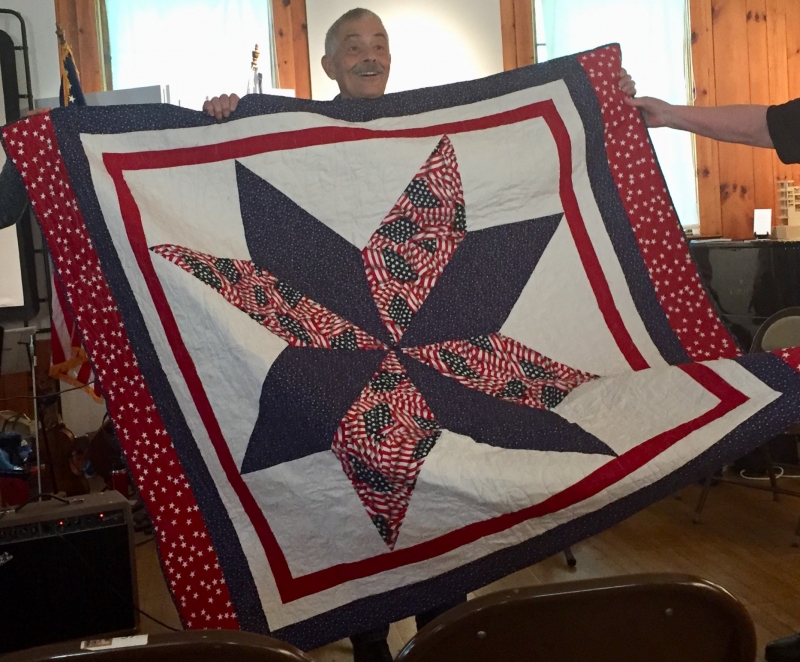 * Several times during the day-long event, time was taken to honor the service of veterans and present them with a quilt made by the Ashe County Piecemakers Quilt Guild. Look at the thumbnails to the right to see many of the beautiful quilts that were used to wrap the veterans in it's warming support for their service and sacrifice.